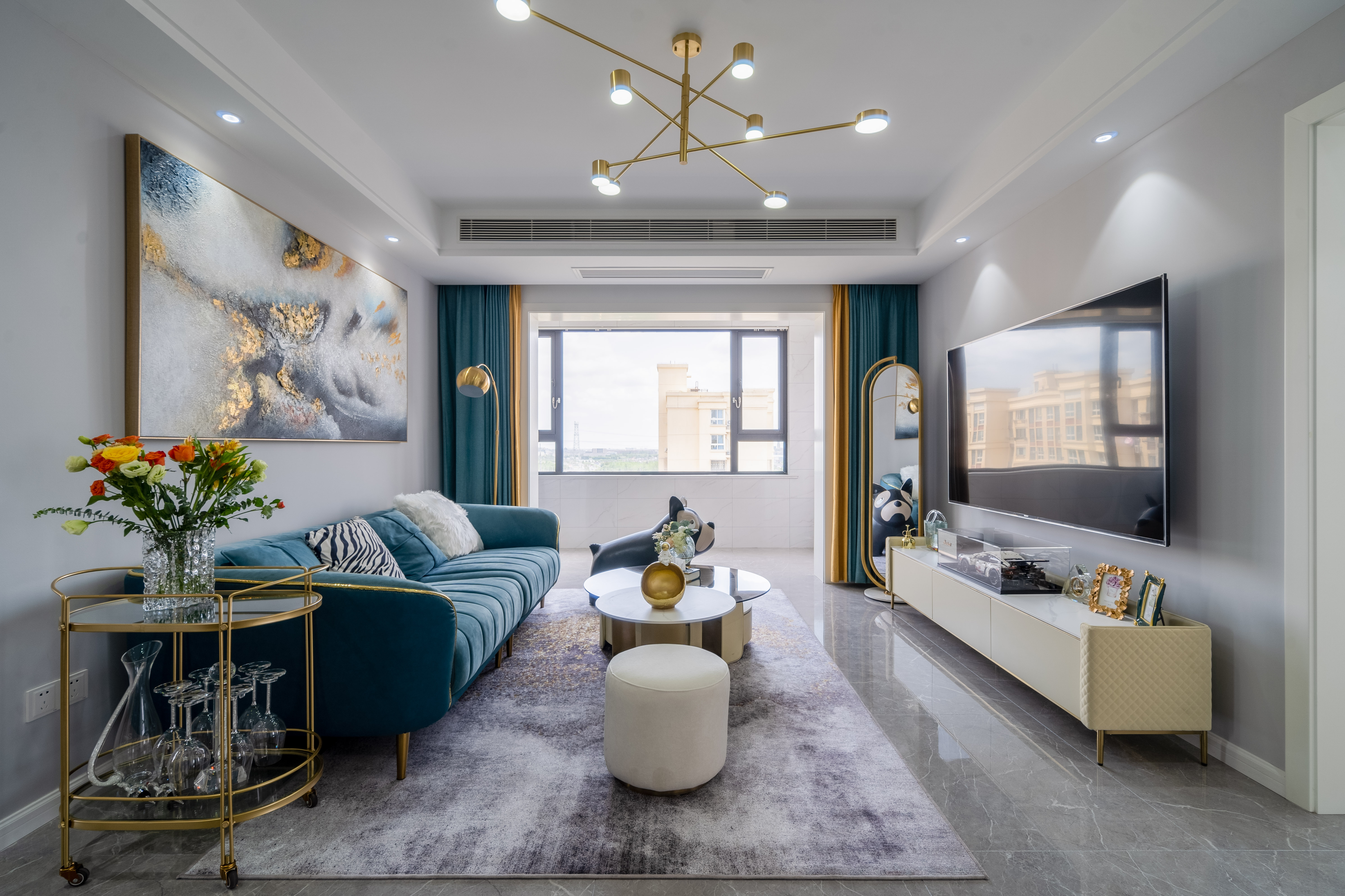 設(shè)計(jì)師:李春雪 風(fēng)格:現(xiàn)代輕奢風(fēng) 戶型:三室兩廳